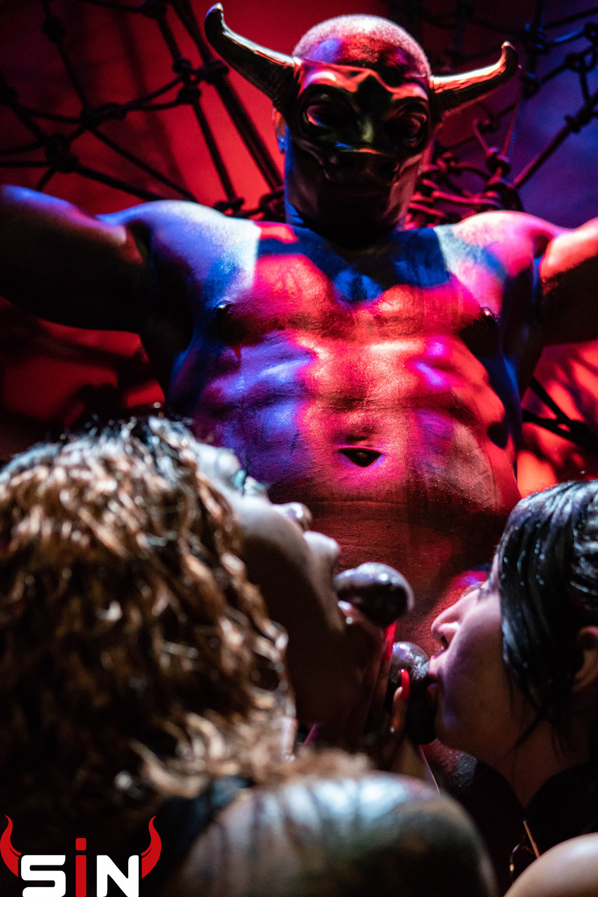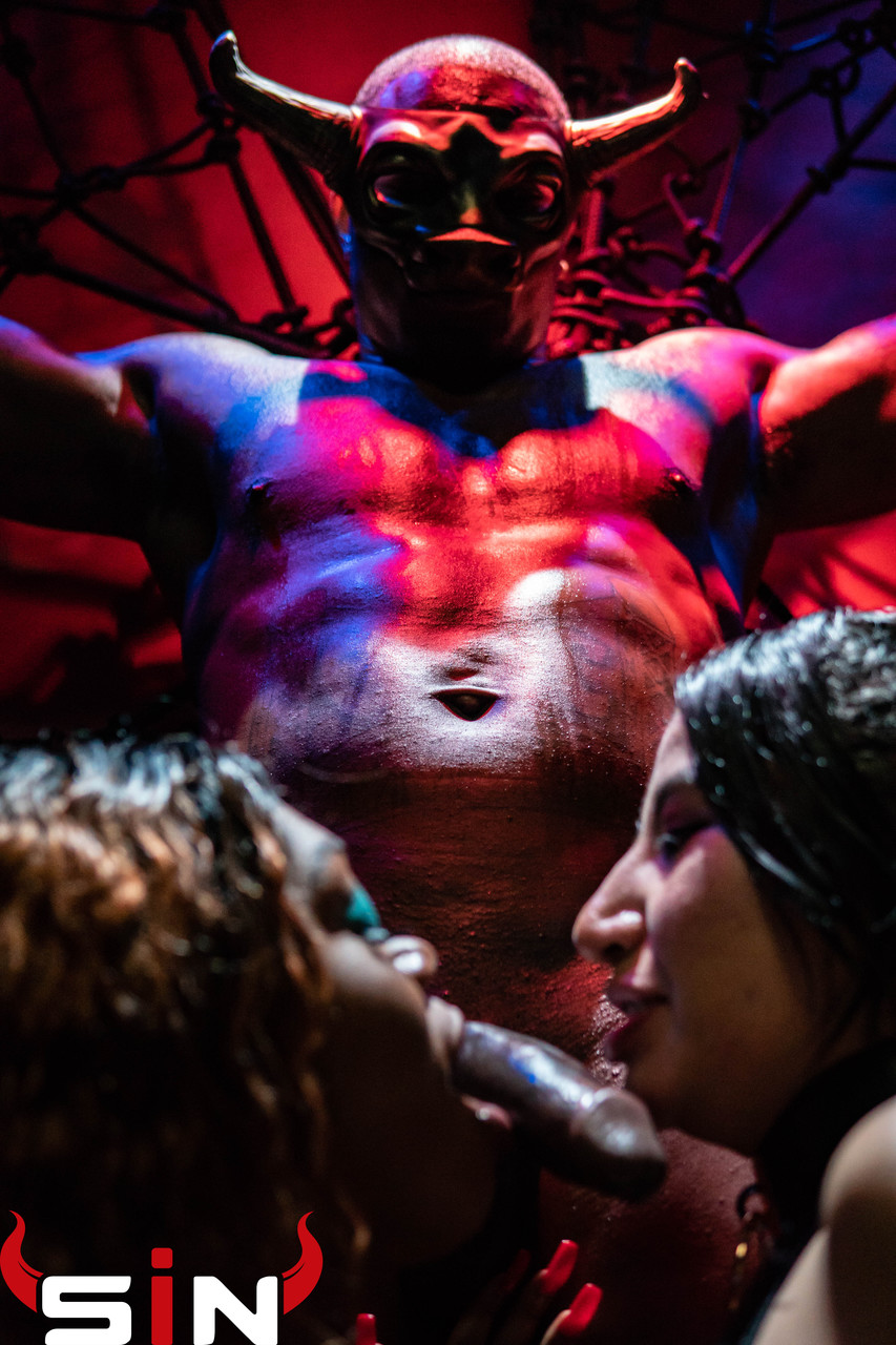 BDSM 三人性爱 与恶魔般的荡妇分享被绑黑男的巨屌 - 图片 1 / 15