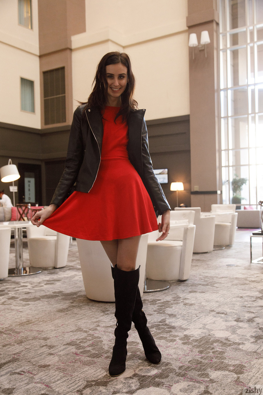 性感的Jasmine Simco在健身房穿靴子展示小胸部和大屁股