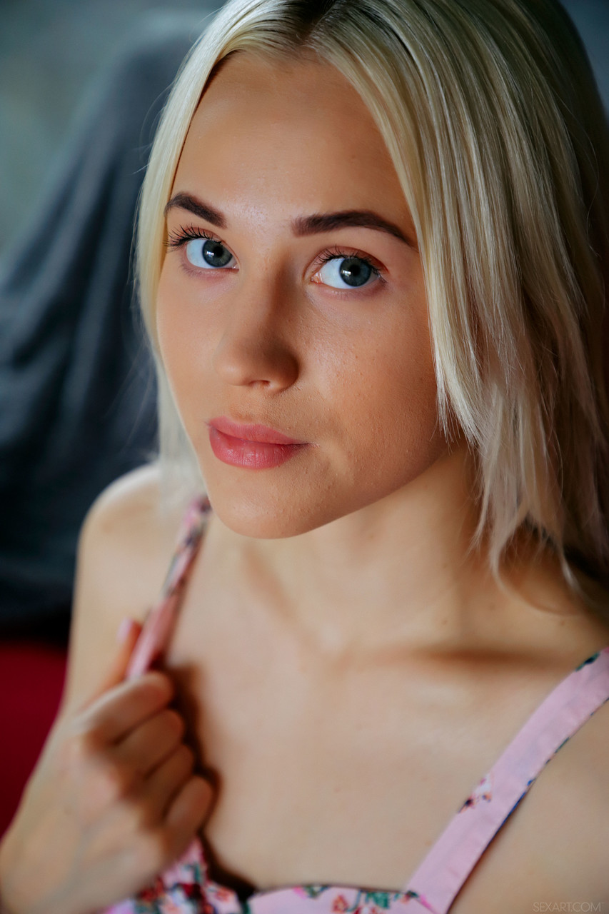 乌克兰少女Nikki Hill在裙底装中炫耀娇小曲线,张开无内裤的特写,展示可爱欧洲小穴和性感腋毛的少女艺术照。