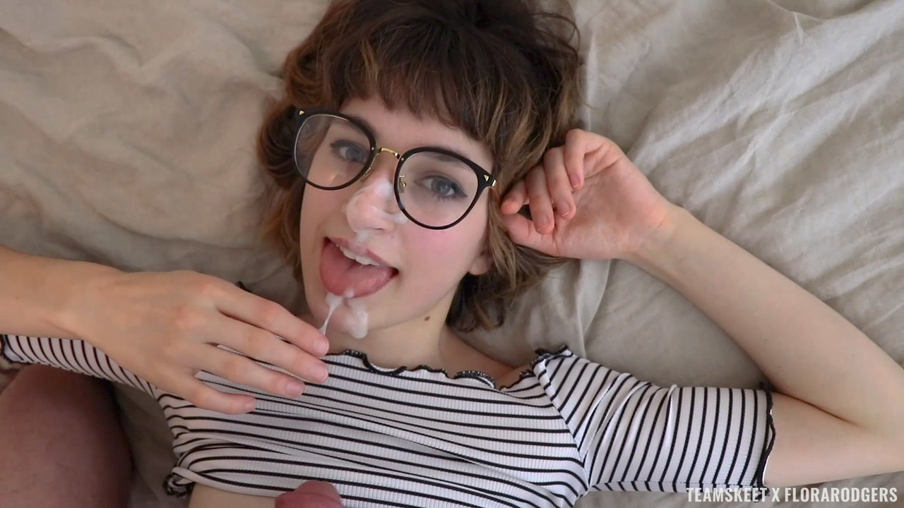 书呆子青少年Flora Rodgers吸吮巨大的阴茎,第一人称视角,狗交式性爱被猛烈操——瘦小的书呆子女孩拥有小乳房,接受激烈的性交和精液。