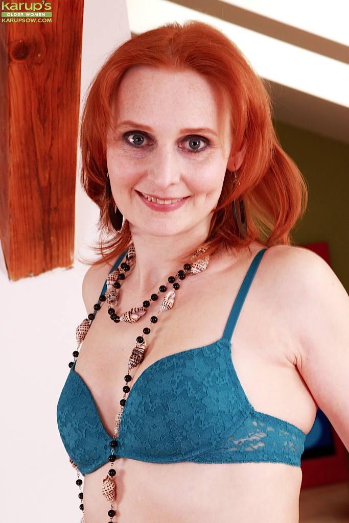 成熟的红发性感女郎Bachova模特穿着胸罩和内裤