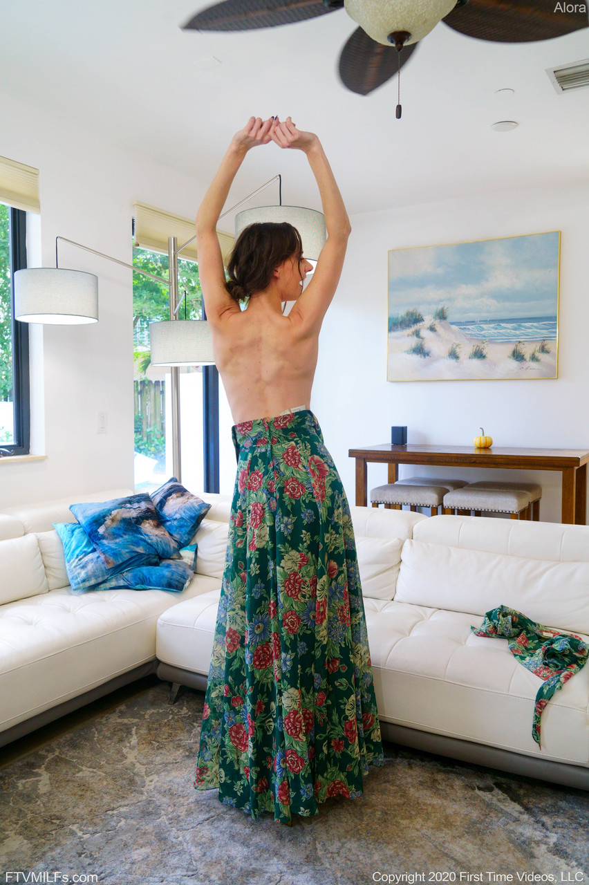 业余熟女Alora掀起夏日连衣裙,穿高跟鞋和内裤张开双腿,晃着下垂的奶子和湿润的蜜穴,挑逗40+自然自慰幻想。