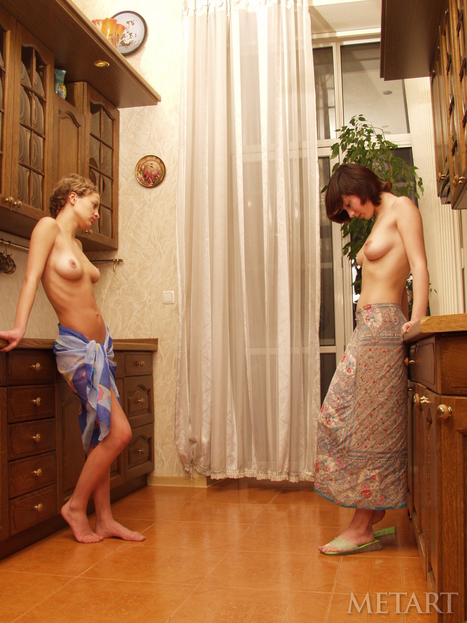 Met Art 呈现一组惊艳的裸体画廊:骨感大胸少女与美艳 solo 辣妹在厨房里炫耀完美少女酥胸与长腿。