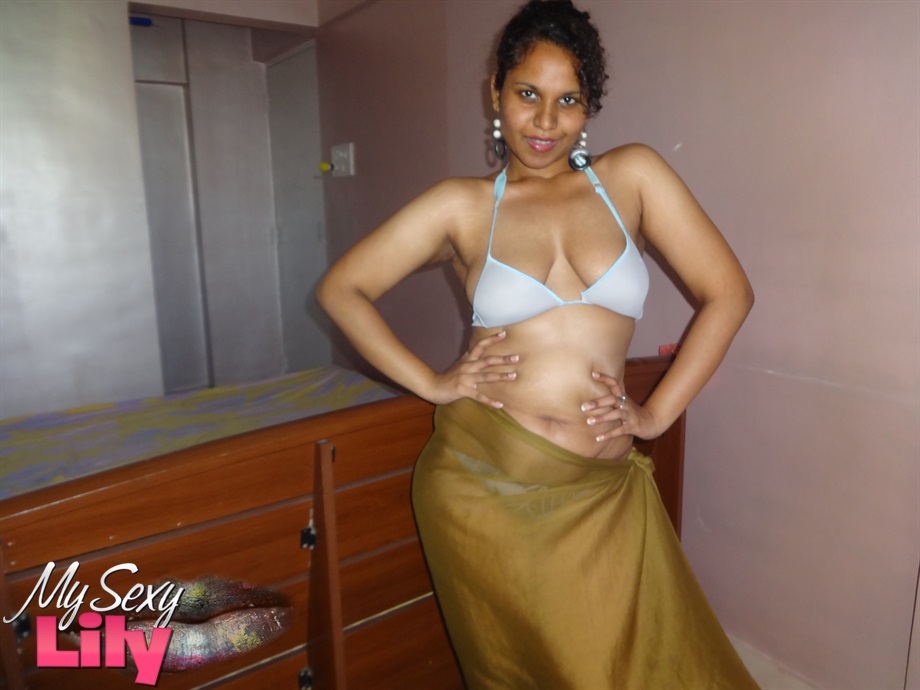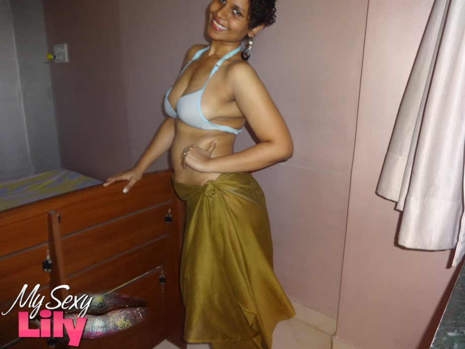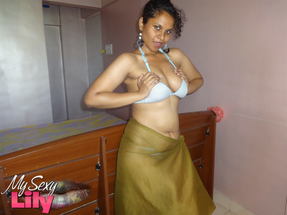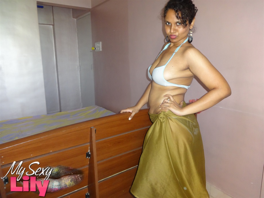 性感的印度宝贝,拥有丰满的印度胸部,穿着胸罩和内裤挑逗,脱衣时调皮地露出乳房,展示她性感的PAWG翘臀,进行单人比基尼秀。