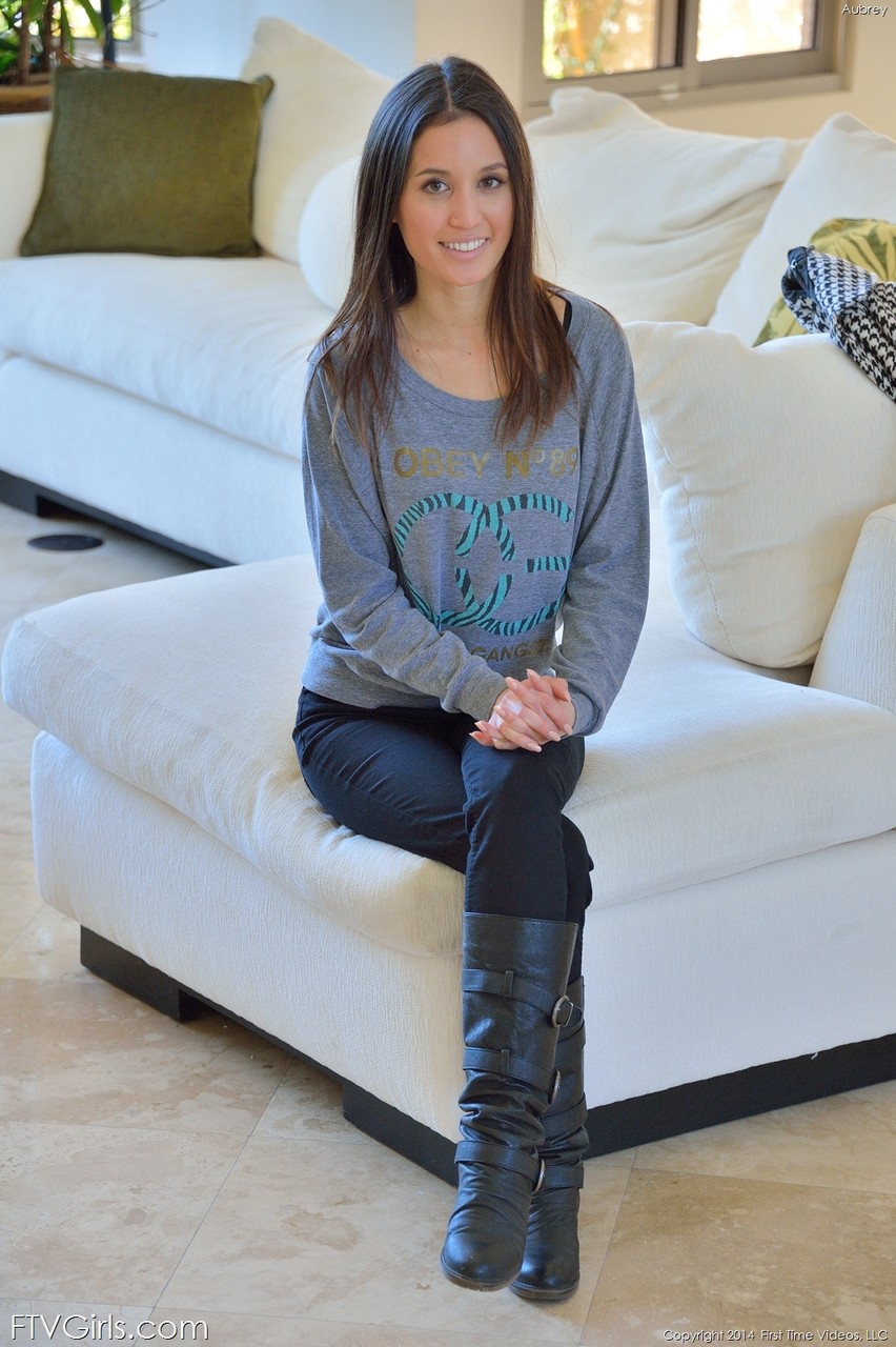 黑发Aubrey褪下紧身牛仔裤,展露玲珑完美的娇躯,近距离特写张开粉色蜜穴。