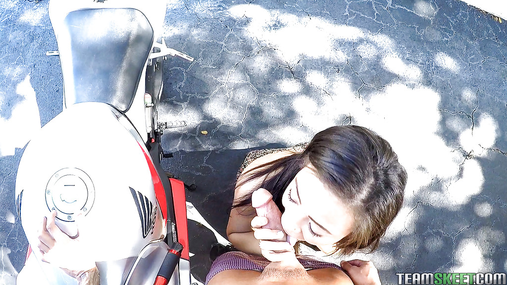 青少年荡妇阿德里安·玛雅在户外为现金吞精