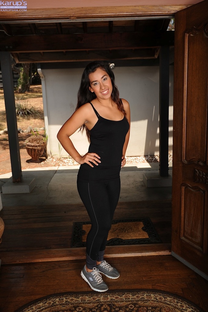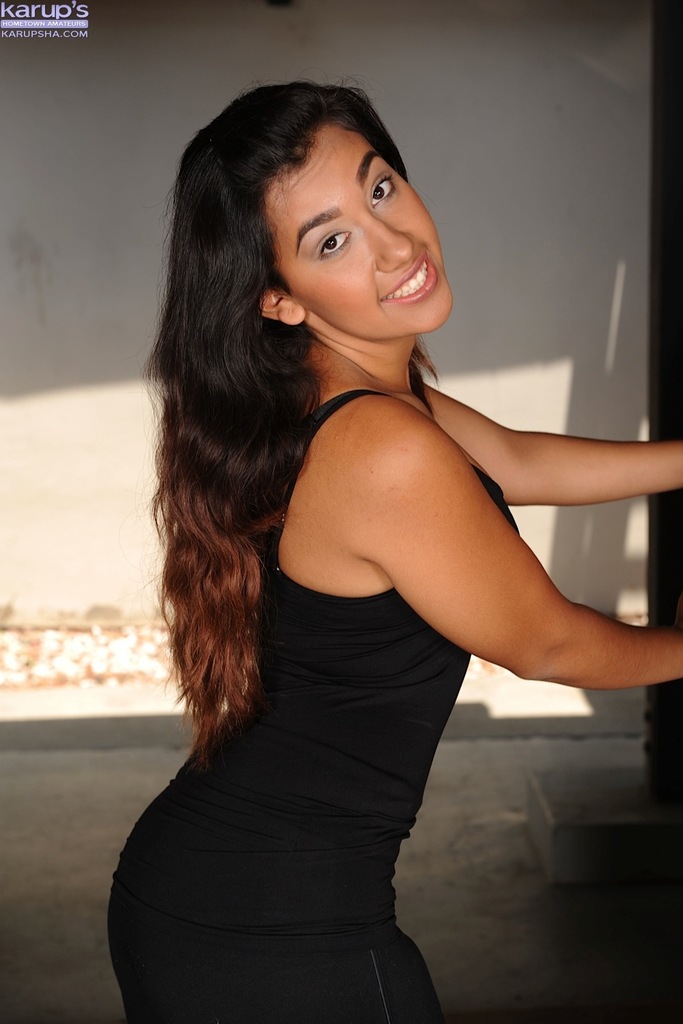 业余独舞女孩脱下氨纶裤子在露台裸体摆姿势 - 图片 16 / 16
