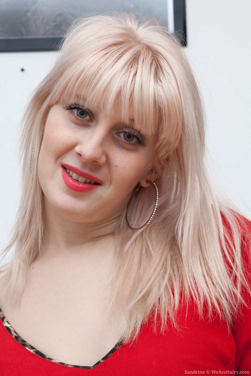 金发美女Sandrina脱下黑色丝袜,穿着高跟鞋和短裙,广泛展现 herself,抚摸着她自然的毛茸茸的私处,特写她的毛茸茸的阴道和肛门,挑逗性十足。