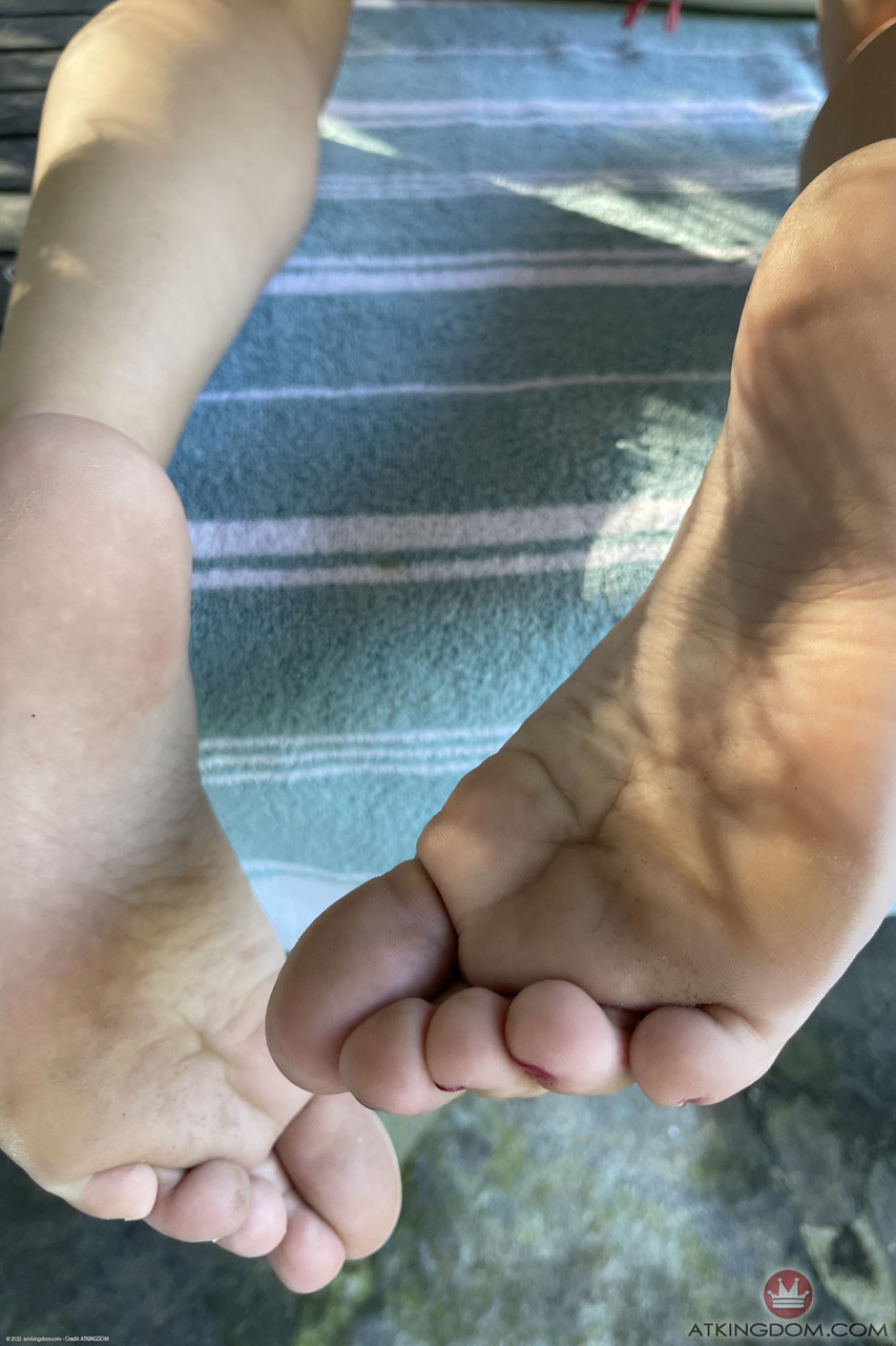 Kourtney Rae 展示她紧致的小身材,打开她剃光的阴部,大阴蒂露出来,修长的少女腿和可爱的脚,在户外ATK Petites拍摄中。