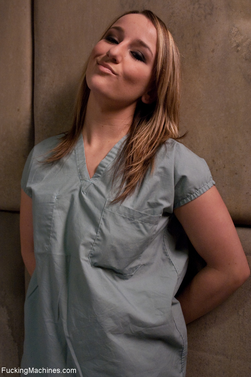 被綁住的性感熟女Jessie Cox為性愛機器開展自製的BDSM屈辱。漂亮的陰道特寫、制服脫衣和陰道穿透,總共有40多張圖片。