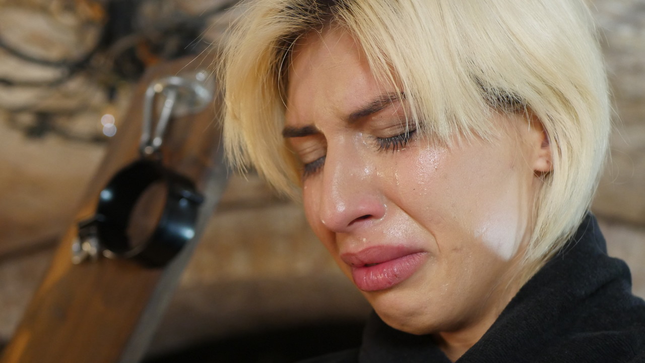 金发女孩被男性Bdsm处理者鞭打 - 图库信息