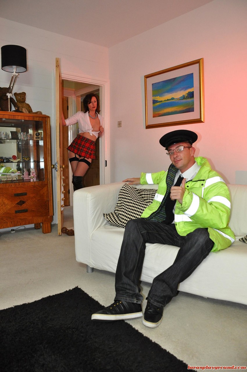 Milf Lara 穿着渔网袜被舔 Pussy 之前骑乘警察鸡巴 - 图库信息