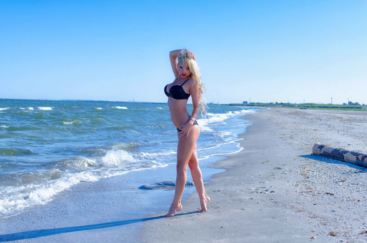 金发美女Nikki Joy穿比基尼在海滩展示曲线 - 图片 1 / 15