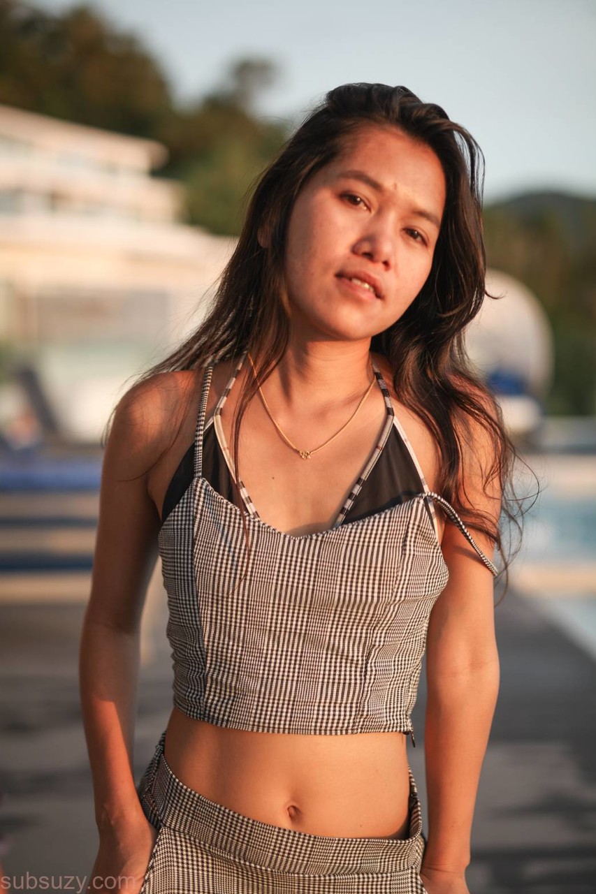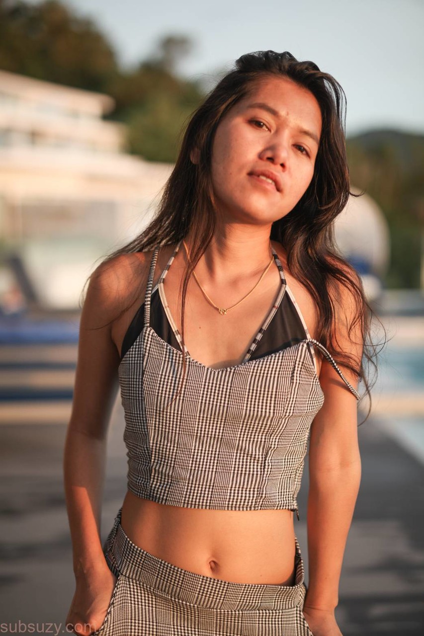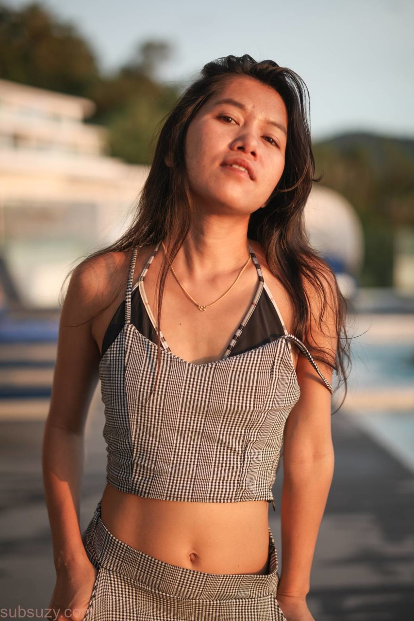 苏子,胸部较平的亚裔少女,展示她在户外的瘦小身材,在非全裸的挑逗中——微小的乳房,俏皮和性感的野性XXX图片。