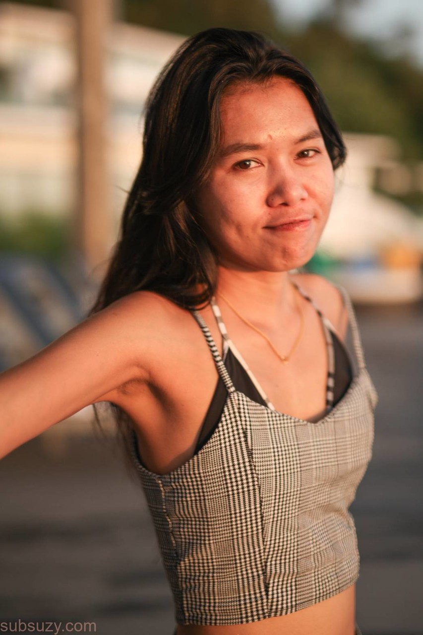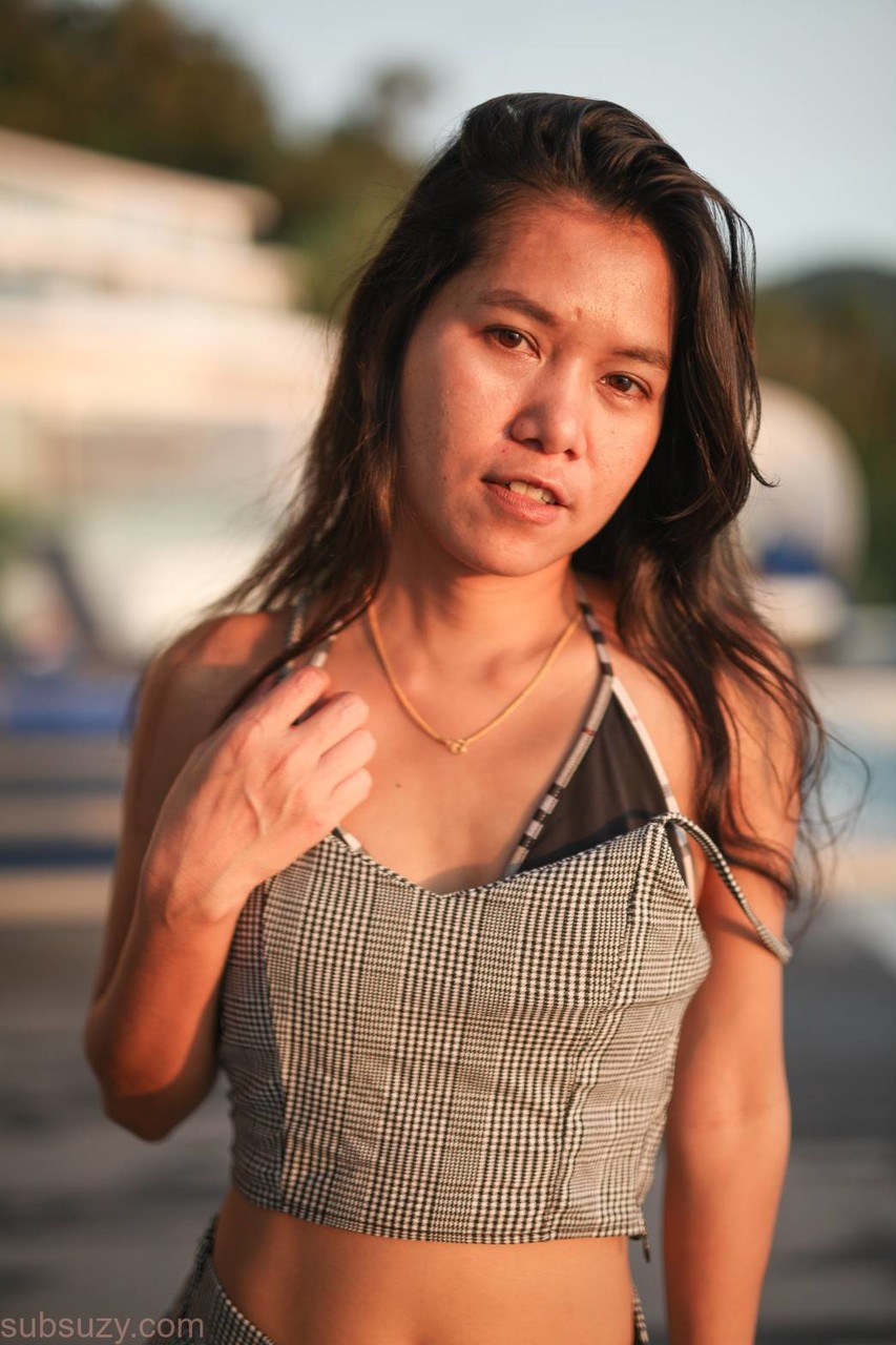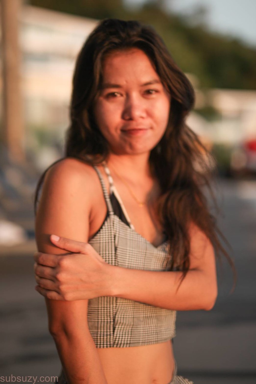 苏子,胸部较平的亚裔少女,展示她在户外的瘦小身材,在非全裸的挑逗中——微小的乳房,俏皮和性感的野性XXX图片。