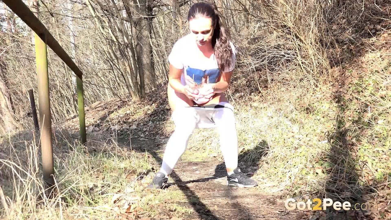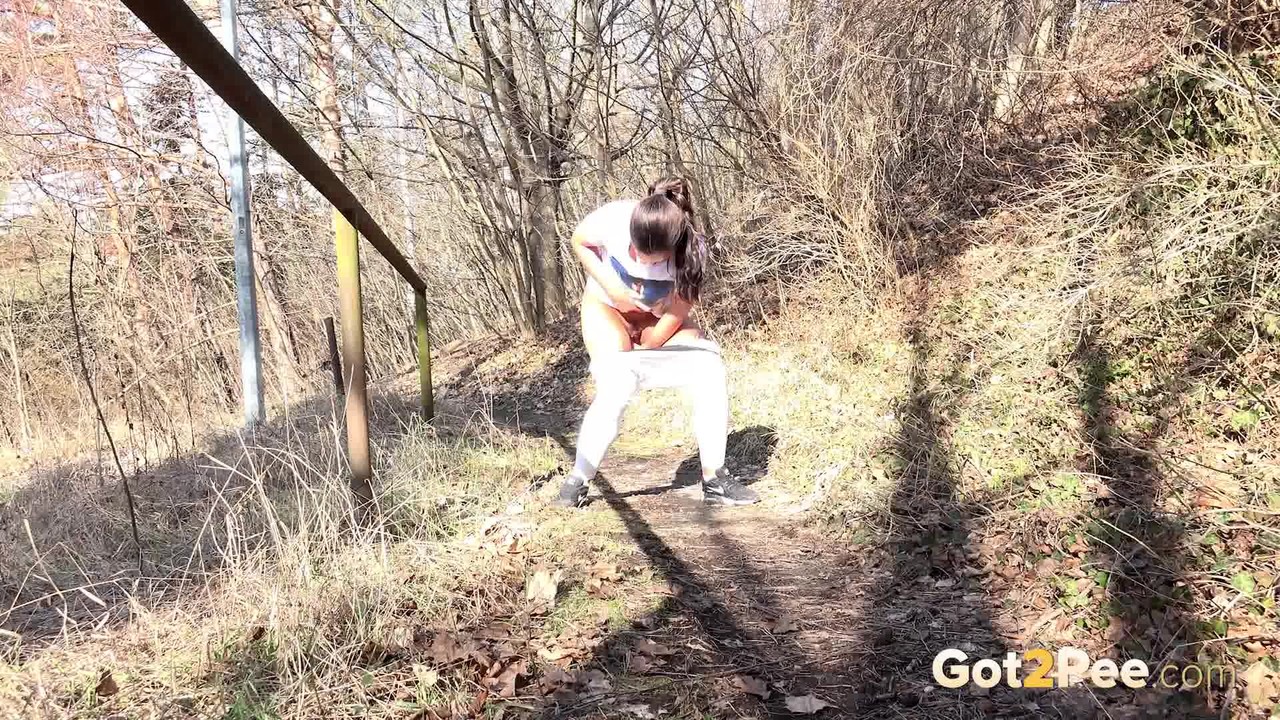 白人女孩 Vinna Reed 在乡间小路上散步时小便 - 图片 1 / 15