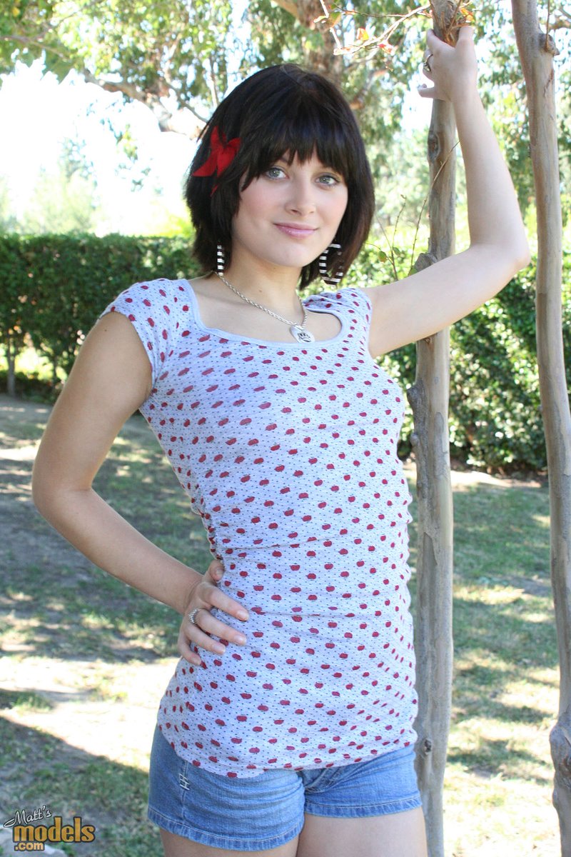 黑发爱好者艾莉偶像在院子脱衣后张开她光滑的阴部