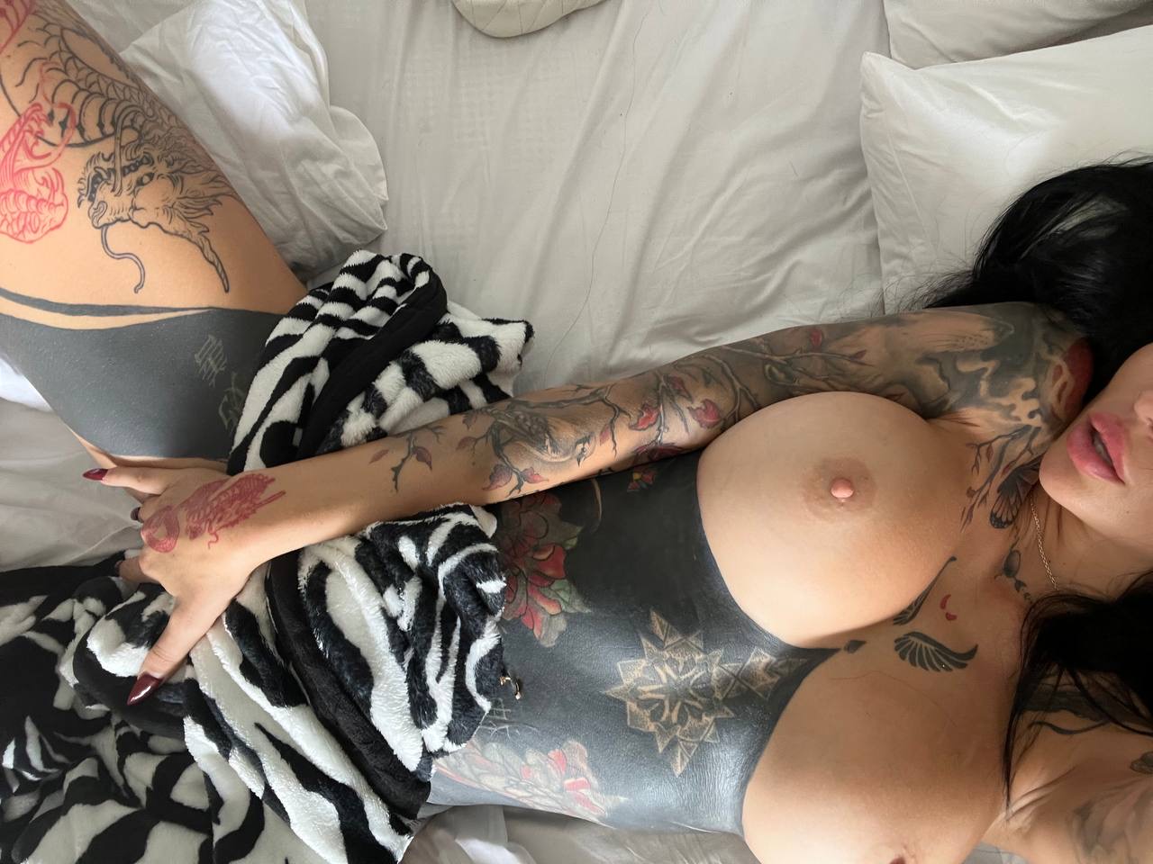 纹身Onlyfans美女Sunny免费脱衣展示她的大胸部 - 图库信息