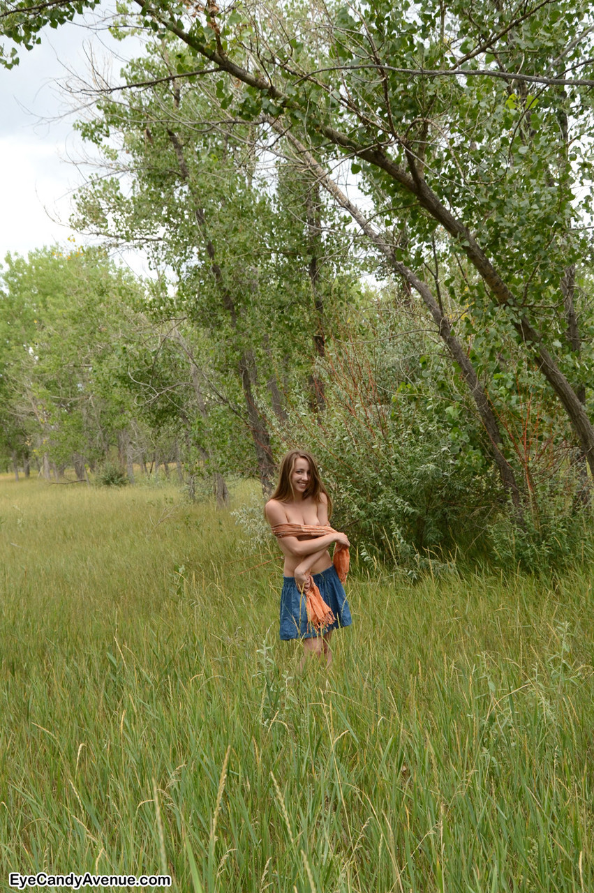 少女杰米在乡村草地上裸体 - 图片 15 / 16