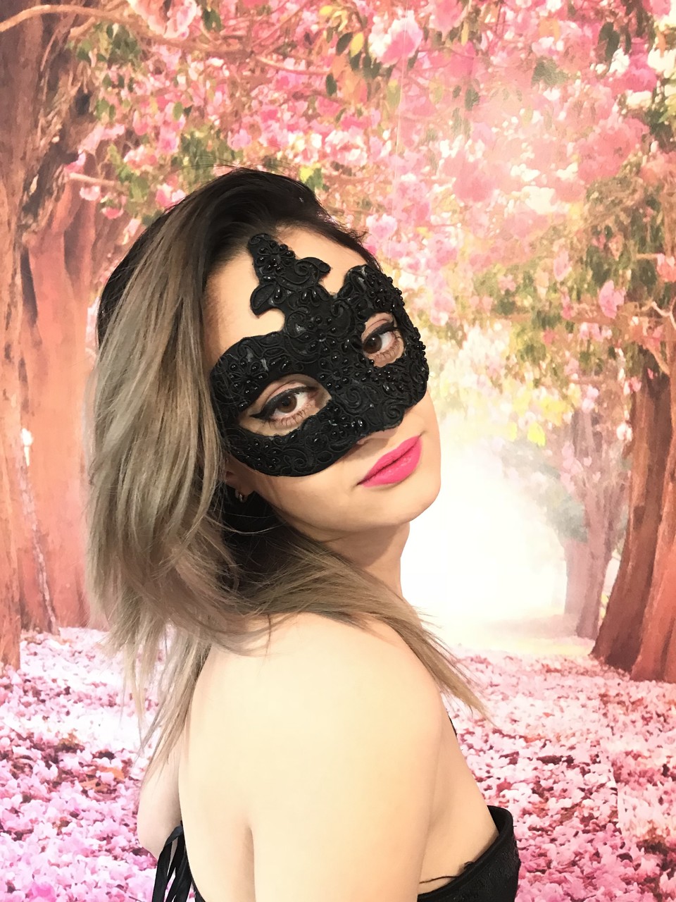蒙面业余模特 Katherine2Hot 穿黑色连衣裙脱至内衣