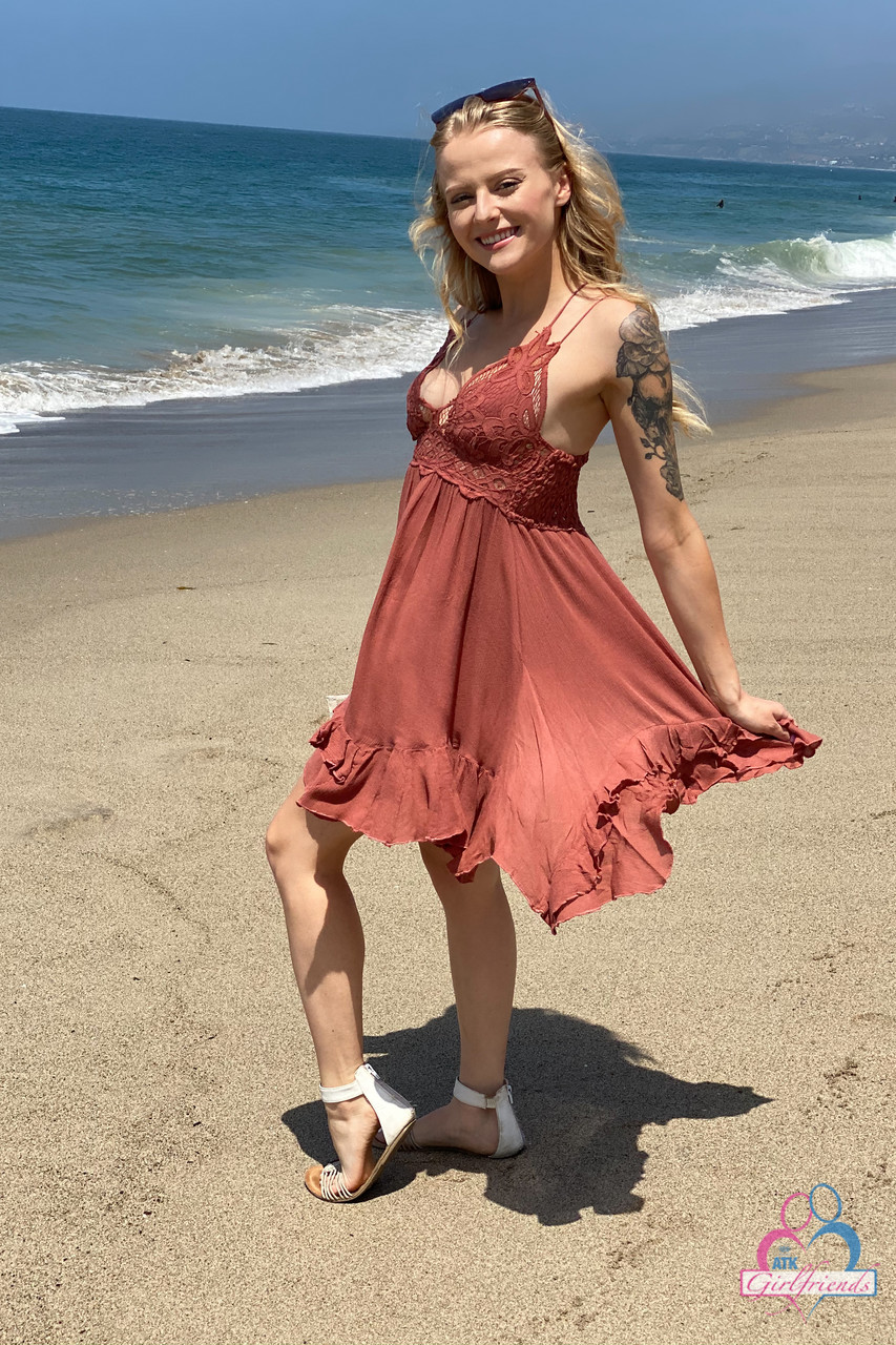 小巧的业余女友Paris White在海滩上露出完美的乳房,弯腰降下内裤近距离特写精液,展现户外充满精液的阴道。
