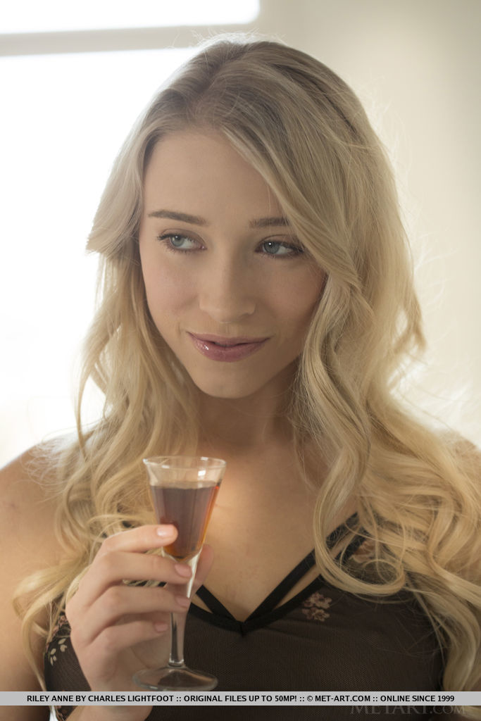醉醺醺又饥渴的美人Riley Anne蹲下秀出她不可思议的宝贝 - 图库信息