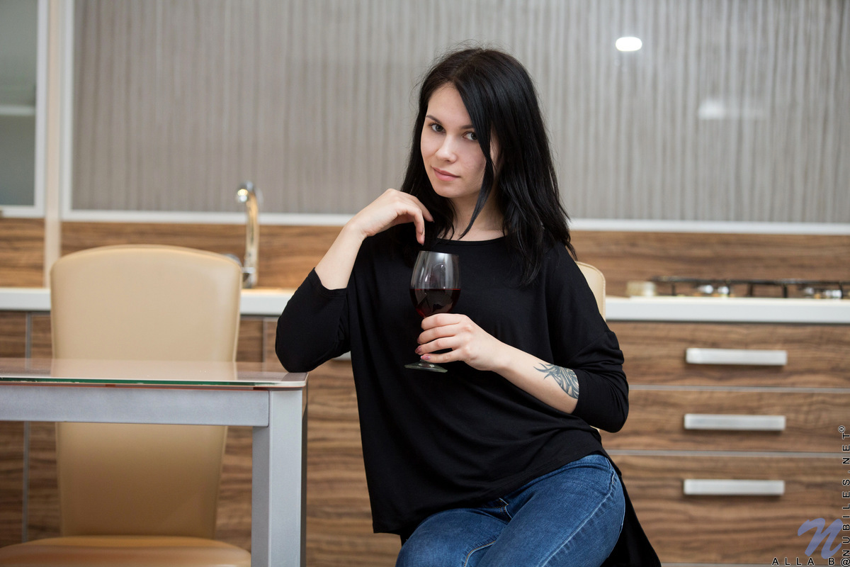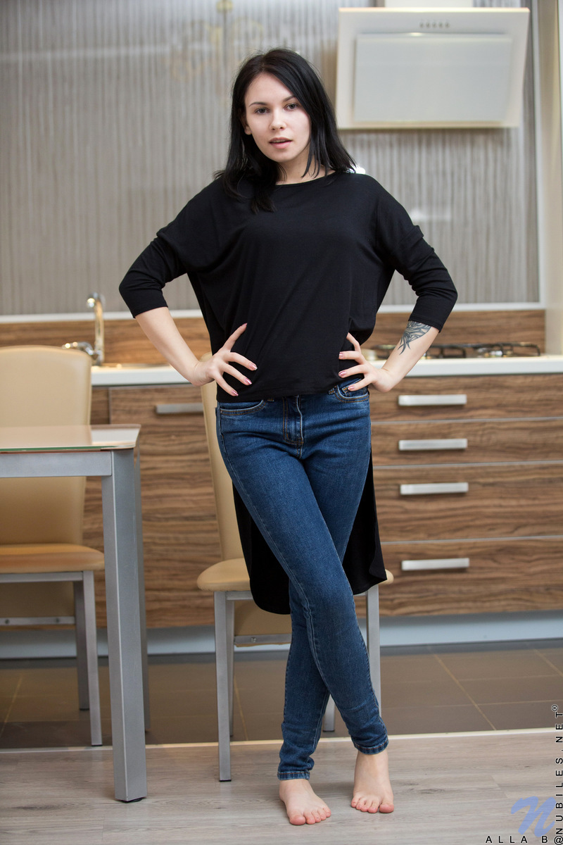 甜美年轻的Alla B脱掉紧身牛仔裤 展示她热辣的逼