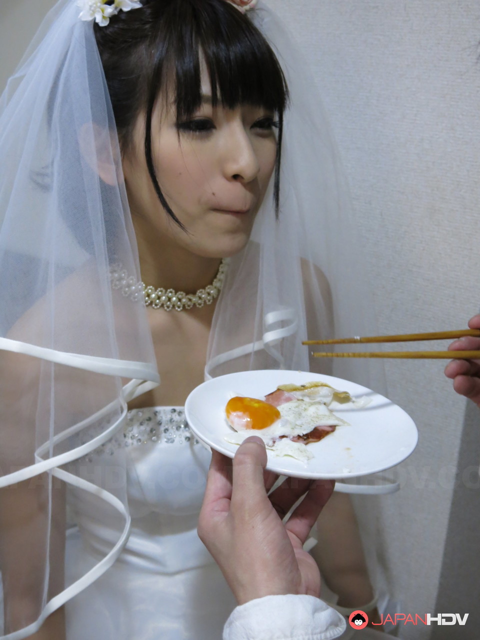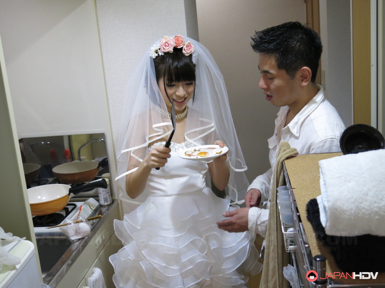 日本新娘成宫留理品尝婚礼蛋糕,随后在地板上屈服于衣着的激情—毛发可见的裙底,制服裙被掀起,亚洲式后入高潮。