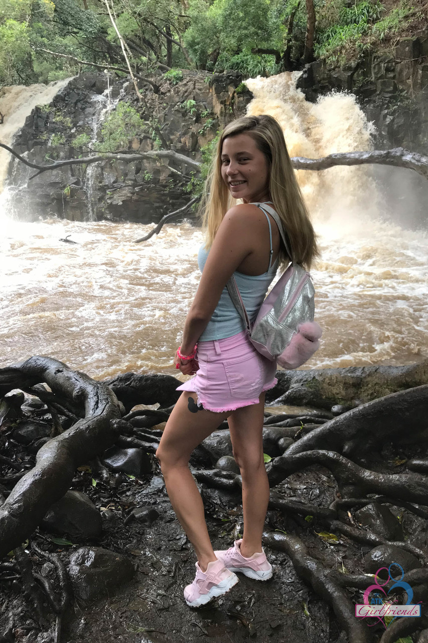 业余女友卡罗莱娜·斯威茨在户外炫耀她可爱的娇小身材