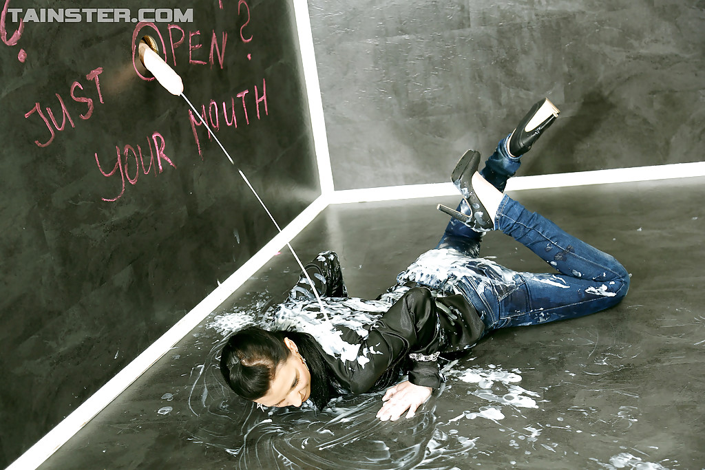 伊丽莎白,一位穿着紧身牛仔裤的PAWG,在gloryhole处挑逗——特写的口交,bukkake的乐趣,她的牛仔裤屁股充分展示。