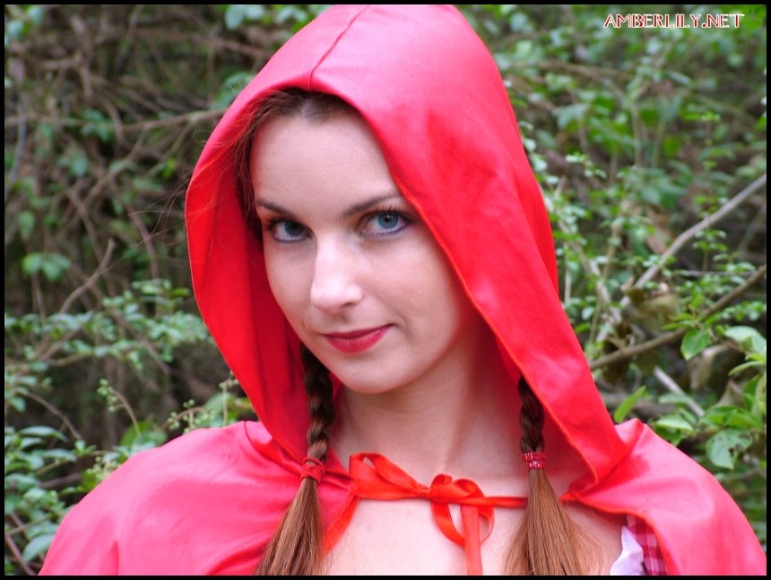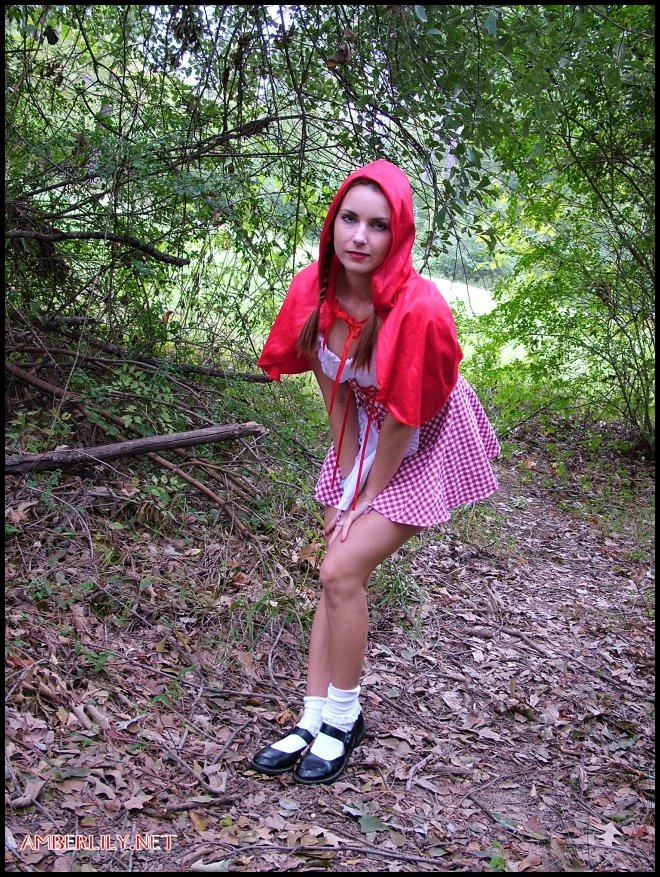 业余的熟女Amber Lily在户外脱下她的小红帽装扮,露出红发的内裤和解放她的乳房和阴道,进行成熟的cosplay挑逗。
