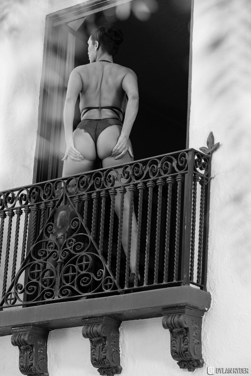 Dylan Ryder 在阳台上穿着内衣摆姿势,拥有极好的身体