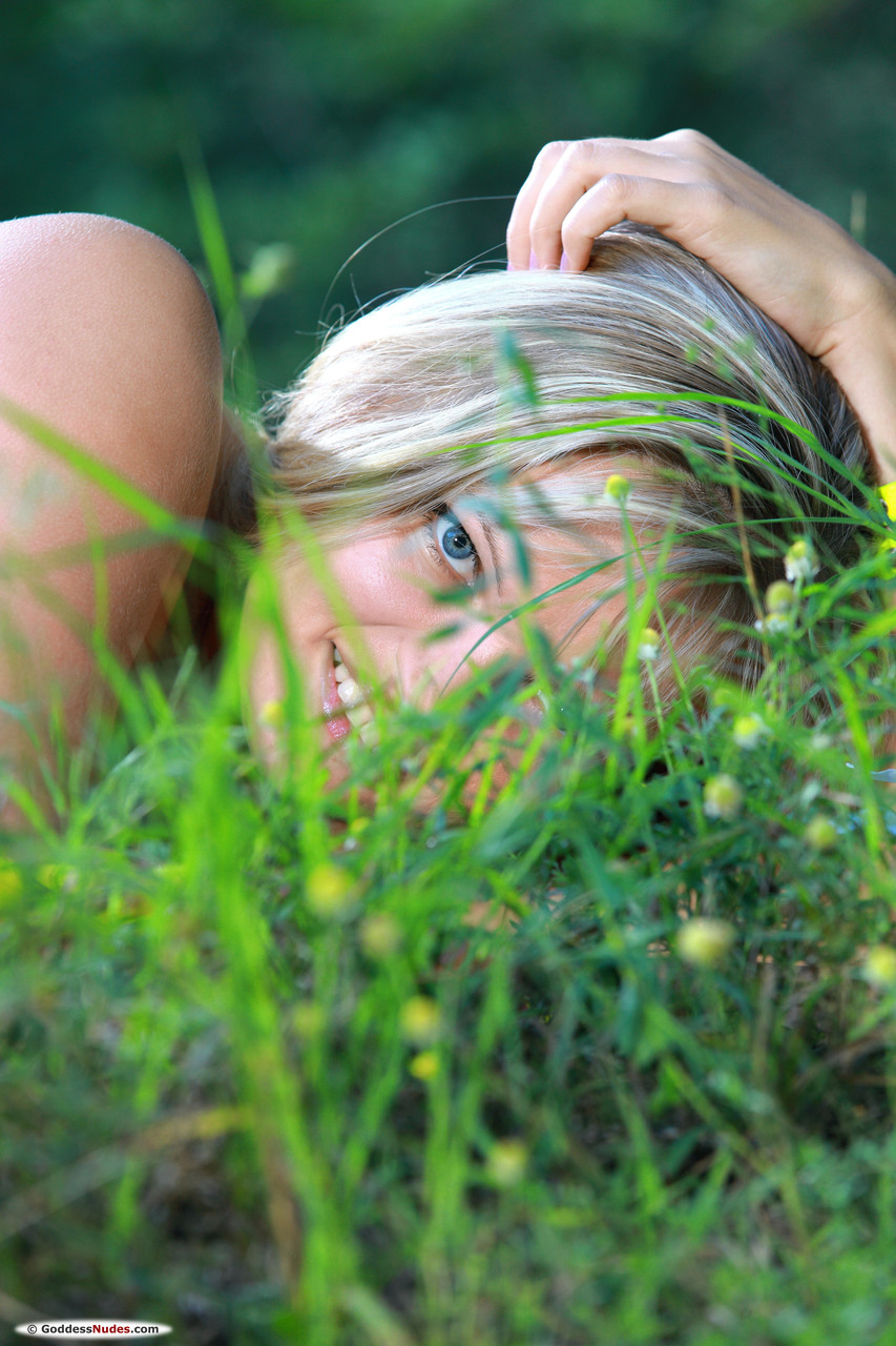 金发少女Malinka A在户外脱衣,展现她微小的乳房,完美的臀部和紧密的陰道,在Goddess Nudes的热门打开腿部画廊中。
