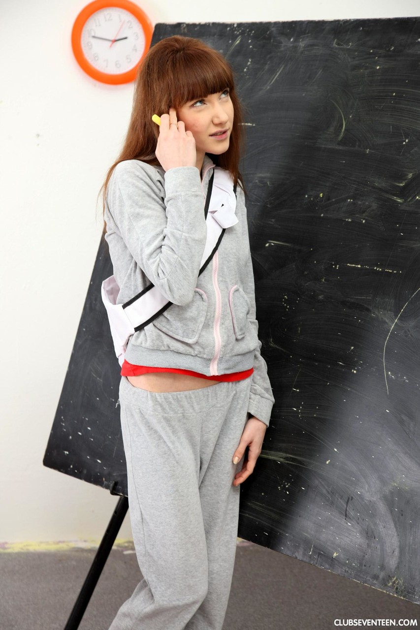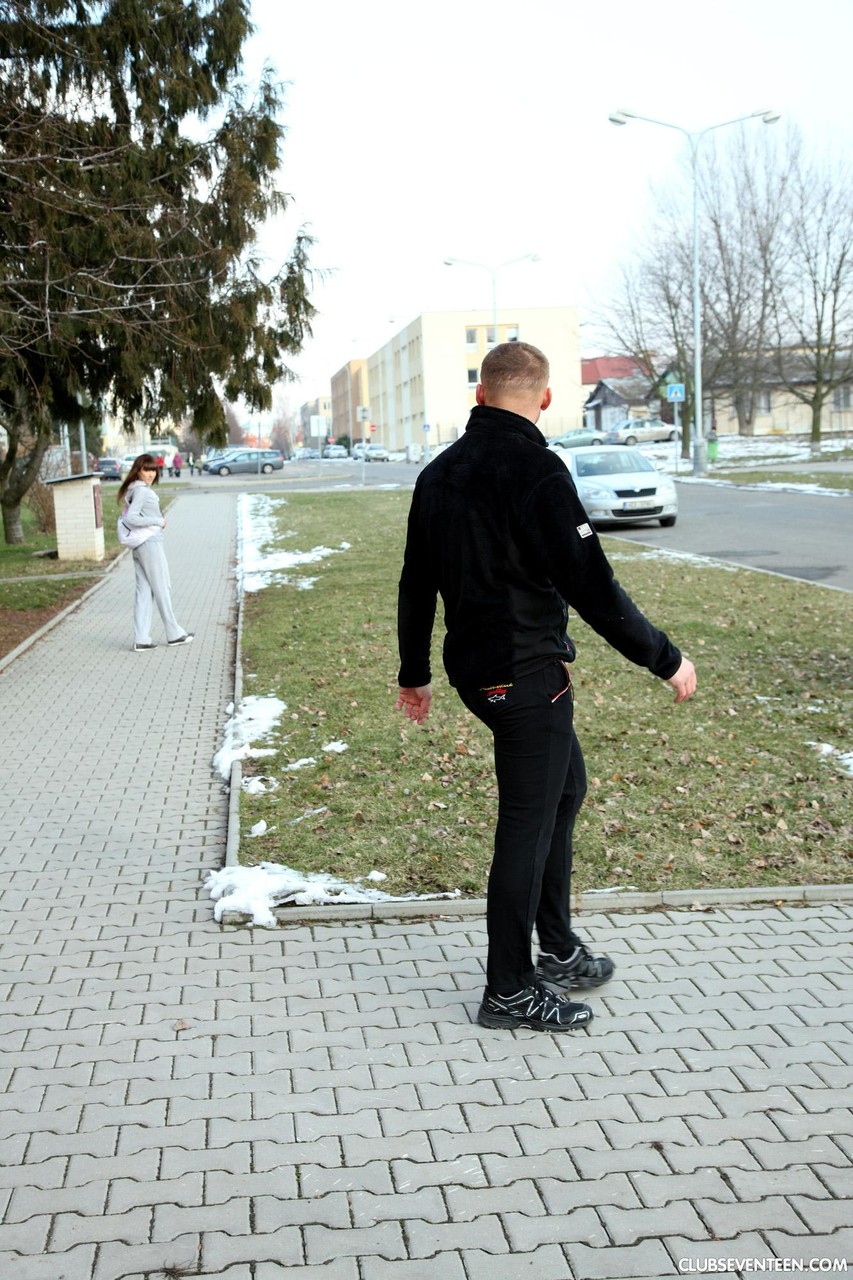 Adrianne B 在户外和办公室脱光衣服,露出小乳房和紧密的阴道,同时为Club Seventeen的青少年薄荷画廊手淫。
