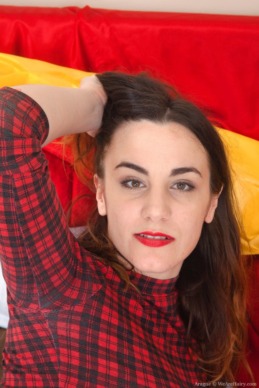 Aragne 脱掉衣服,展现她浓密的自然阴毛,特写阴部,巨大的业余乳房,臀部,脚和内衣诱惑。