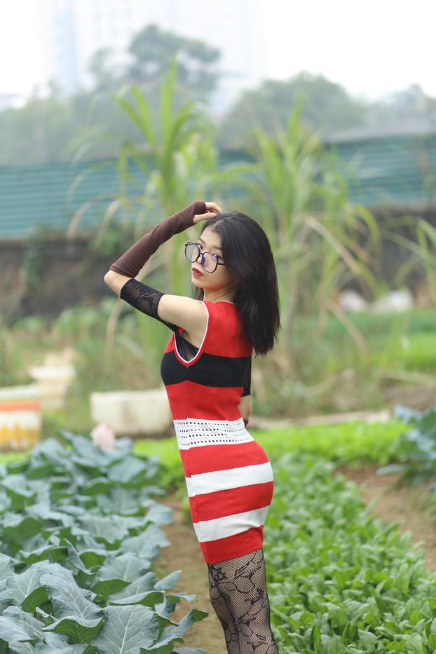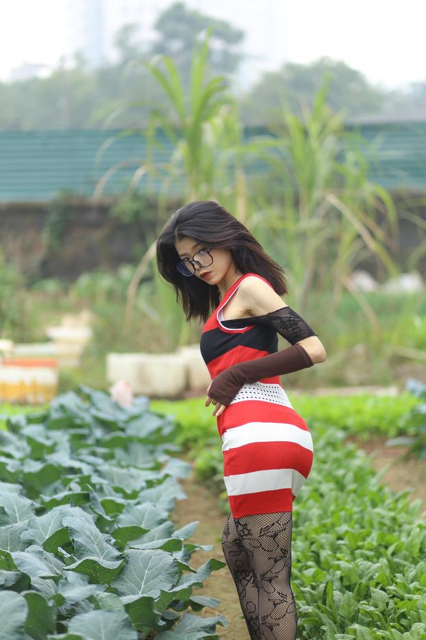 苗条的亚洲美女Irena穿着蕾丝内衣挑逗,裙子和长袜下露出红色内裤;戴眼镜的穿衣独奏裙底秀。