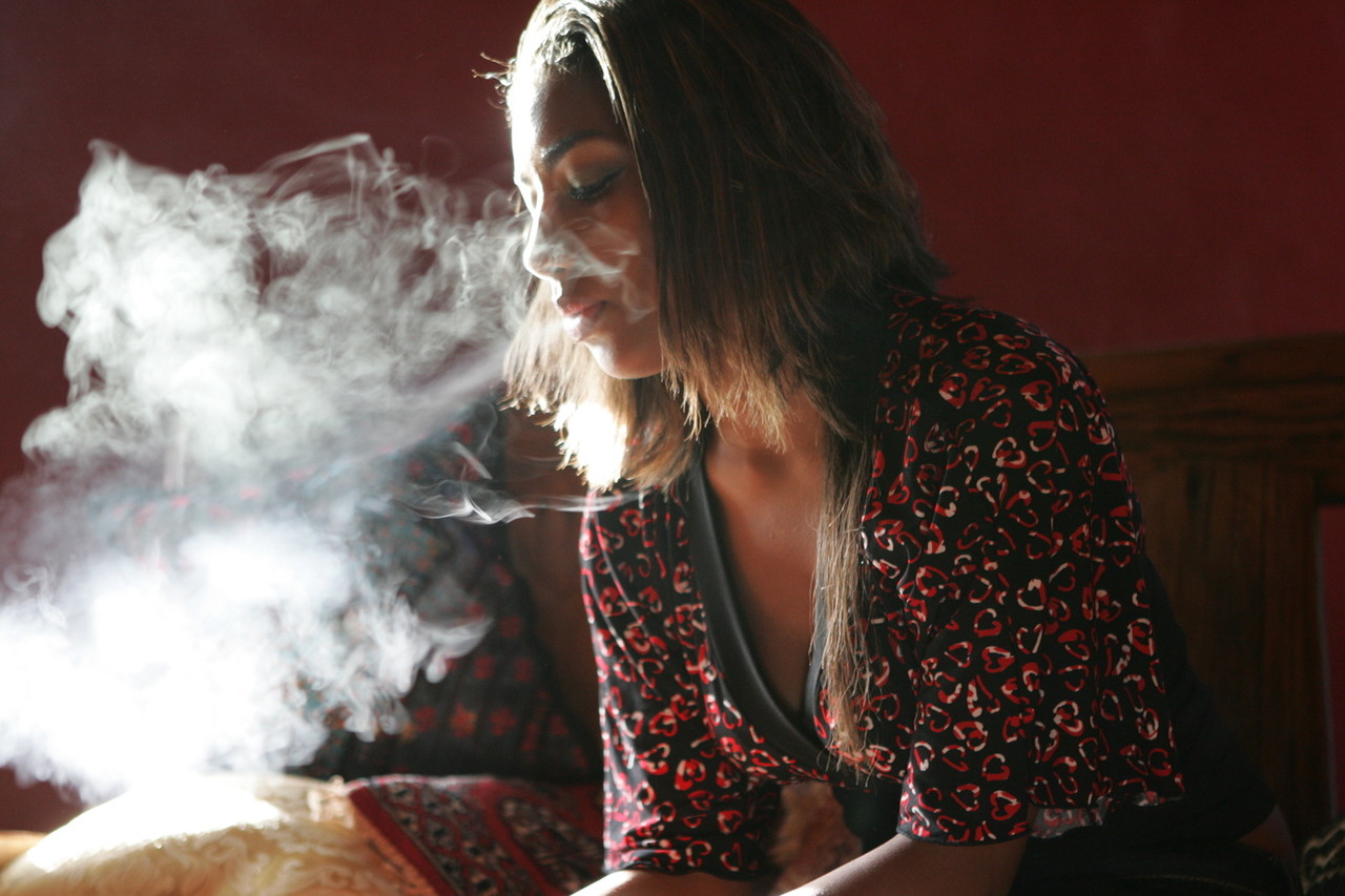 抽烟 非洲 美女 美女 黑 黑发 穿着衣服 黑檀 非裸体 单人