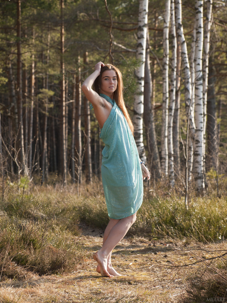 Met Art 的 Lachia A 在户外魅力裸照中炫耀完美的少女曲线、毛茸茸的腋窝和湿漉漉的阴道—这位黑发业余美女毫无保留。