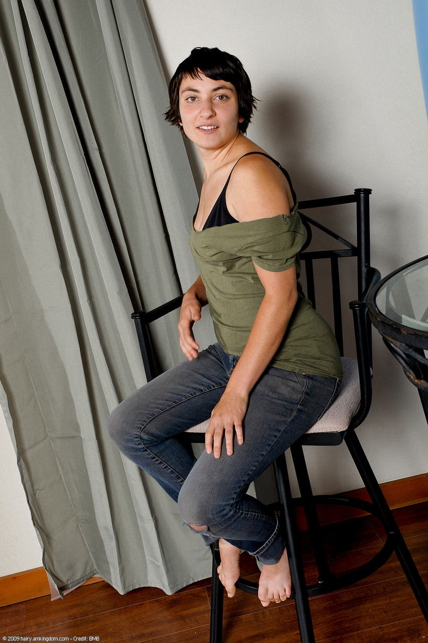 CeeJay 在ATK档案中全裸:短发、毛茸茸的少女脱掉牛仔裤,展现她的业余屄和毛茸茸的腋窝。