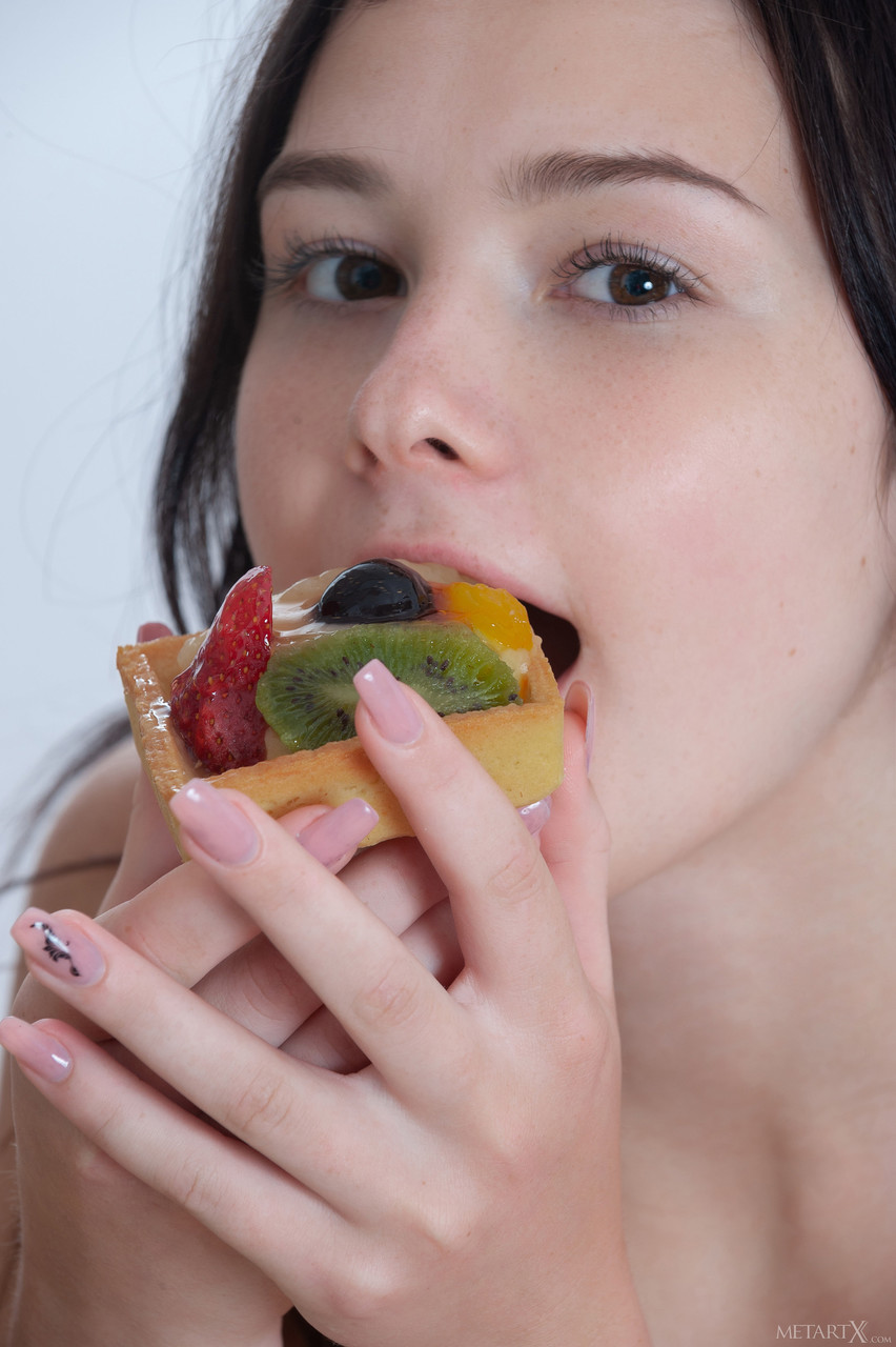 白俄罗斯少女Matty烘焙水果塔,然后脱光衣服,展现紧密的阴道,展示可爱的脚和平坦的胸部。