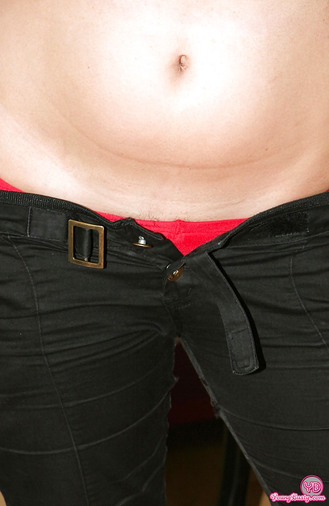 穿著衣服的少女Denny Ros脱衣展示她完美的天然大奶,紧身内裤挑逗小穴,双腿张开特写。